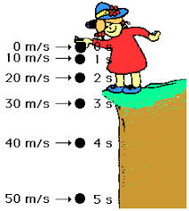 La caída libre corresponde al movimiento en dónde se deja caer un objeto. El siguiente gráfico corresponde a la velocidad durante la caída libre, poniendo un sistema de coordenadas con el origen en el piso y dirigido hacia arriba, es decir la velocidad tiene signo negativo.
